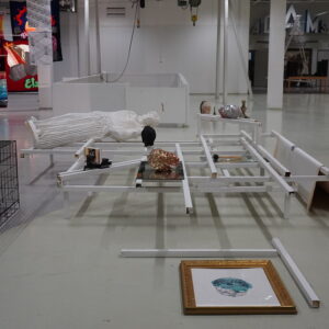 The artists, curators, and organisers of this exhibition have something in common: being institutionally clubbed in with uniformising titles such as “people of colour” or “minorities”. The idea of this exhibition is not merely to give visibility to a selection of “minority” artists—as in less visible to whom? Minority to which majority?—but to broadly ask them to share imaginaries of the sociopolitical identities they carry with them, identities more fluid and hybrid than any label can account for. We often urge ourselves to keep a united front against white supremacy. I ask myself, has there ever been a united front? What is unity without acknowledging differences but a fragile illusion of solidarity that shatters the second you find yourself oppressed by someone who shares your skin tone or your geographical whereabouts, but is miles away from where you’re ideologically situated? This line of inquiry keeps me from transplanting these rich bodies of work and knowledge into homogenising contexts that bend them until they lose a part of themselves to fit. The artists of ‘Fragmented Fronts’ connect geographies with stories lived or imagined; challenge our perception of identity and tradition through feminine practises of storytelling; offer poignant reflections on notions of desire, emotional depth, and complexities of healing and unlearning in the absence of representation and community; and explore issues and ideas spanning broad spectrums of social life: from race and class to social memory and interpersonal dynamics.